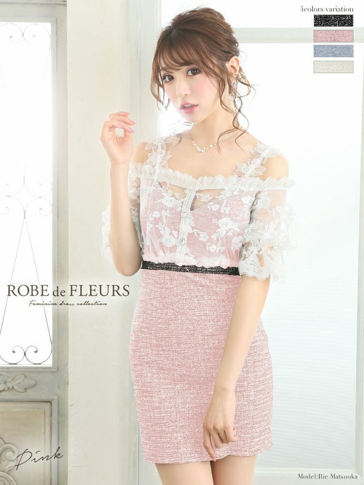 キャバドレス ミニドレス [SALE] [ROBEdeFLEURS/ローブドフルール] 高級ラメツイード×肩あきタイトミニドレス
