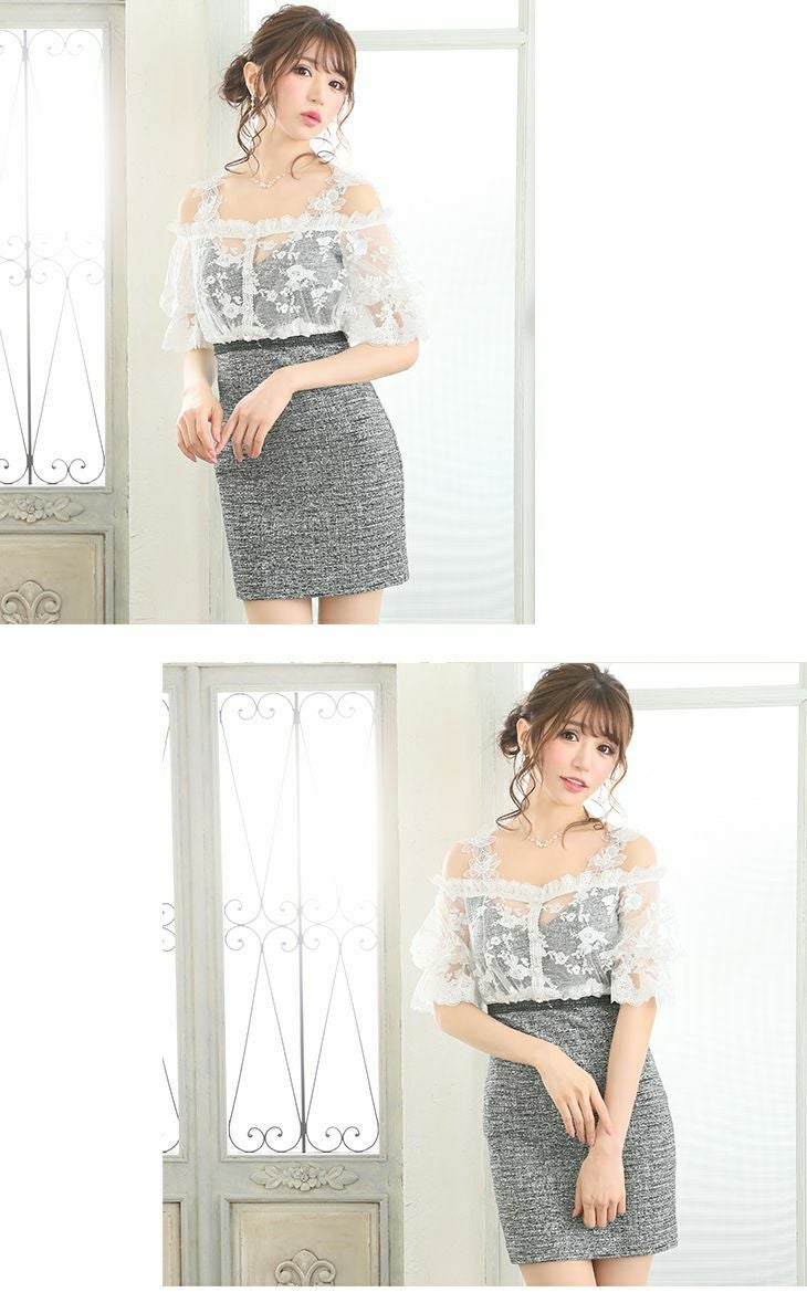 キャバドレス ミニドレス [SALE] [ROBEdeFLEURS/ローブドフルール] 高級ラメツイード×肩あきタイトミニドレス