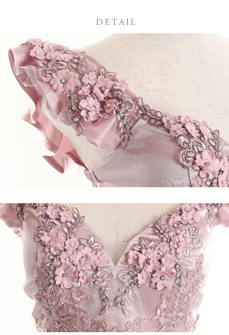ビジューやパールが可愛い☆ [ROBEdeFLEURS/ローブドフルール] 高級立体フラワー袖フリルパール付きチュールノースリーブハイウエスト切替フレアミニドレス