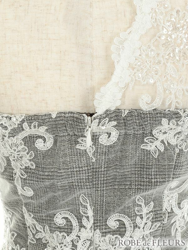 5. [ROBEdeFLEURS/ローブドフルール] 高級ラメフリル袖レースグレンタイトミニドレス