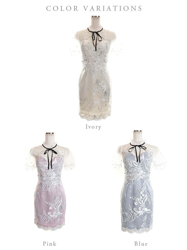 3. [ROBEdeFLEURS/ローブドフルール] 高級ネックリボンパールスリーブ×フラワーレースタイトミニドレス