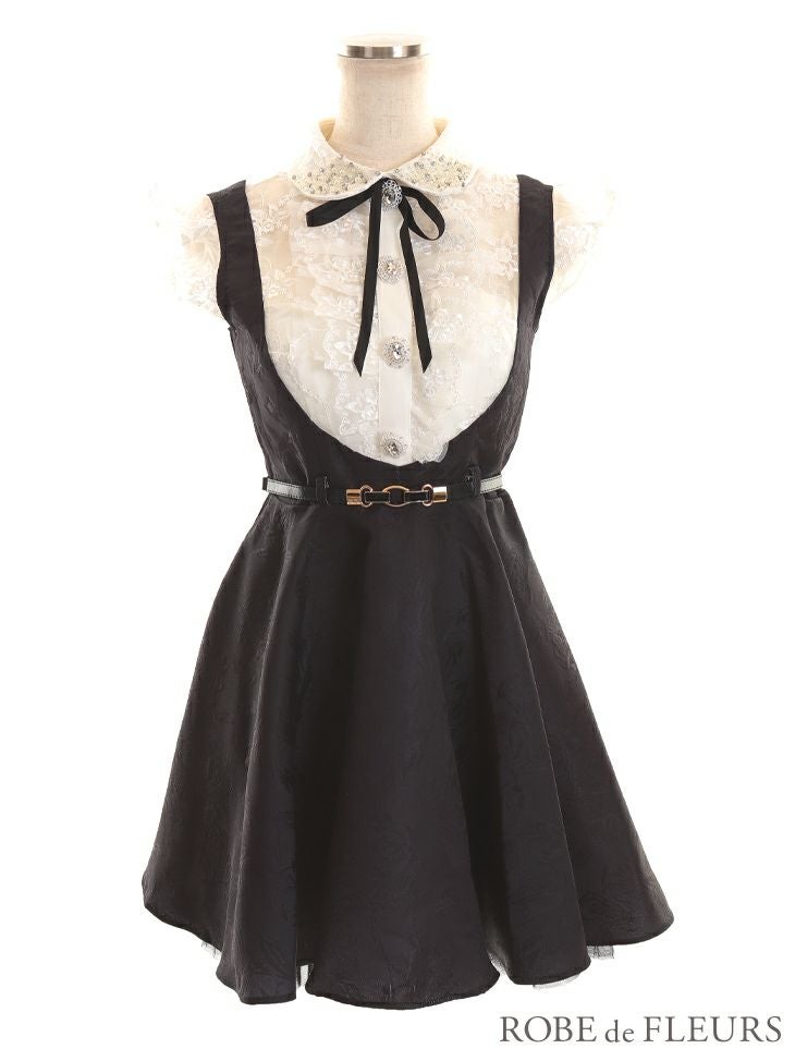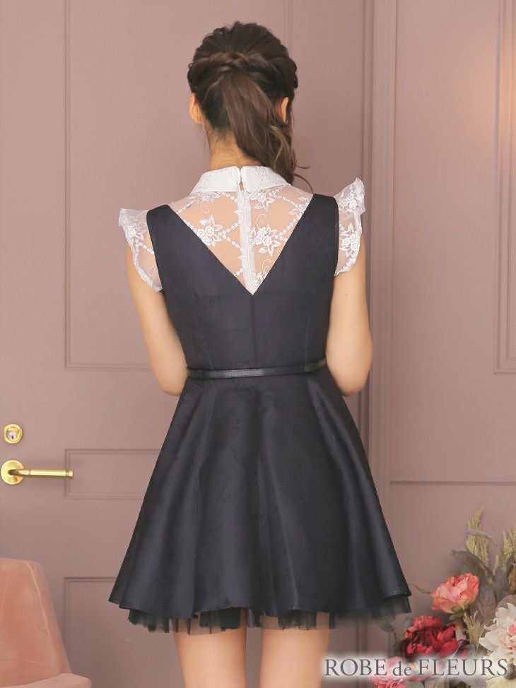 4. [ROBEdeFLEURS/ローブドフルール] 高級フラワーレースリボンフリル袖ベルト付きフレアミニドレス
