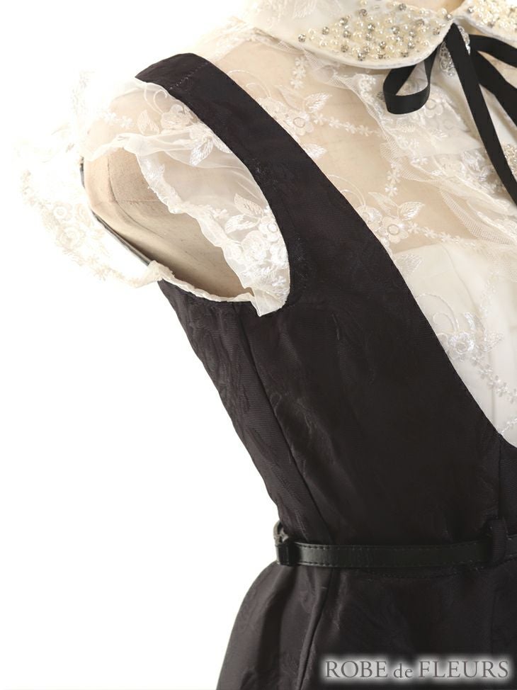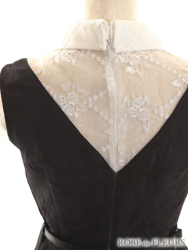 5. [ROBEdeFLEURS/ローブドフルール] 高級フラワーレースリボンフリル袖ベルト付きフレアミニドレス