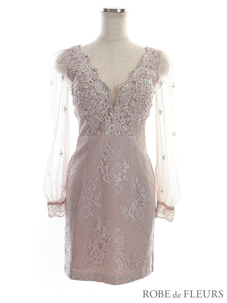 ガーリーとセクシーの融合☆ [ROBEdeFLEURS/ローブドフルール] 高級フラワーレースシースルー長袖 袖ありスカラップカットタイトミニドレス