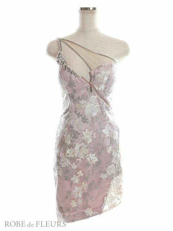 フラワー刺繍レースが鮮やかに大人っぽい☆ [ROBEdeFLEURS/ローブドフルール] 高級フロントジップエレガントミニドレス