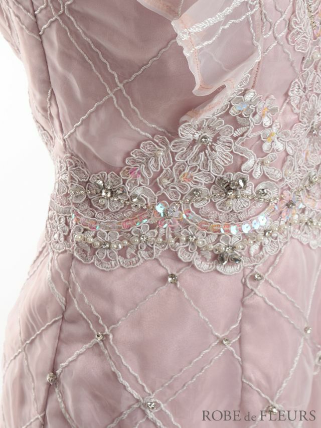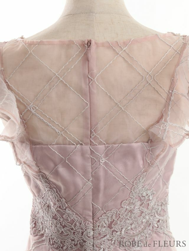 4. [ROBEdeFLEURS/ローブドフルール] 高級フリルスリーブブロックチュールフラワーモチーフパールビジューノースリーブミニドレス