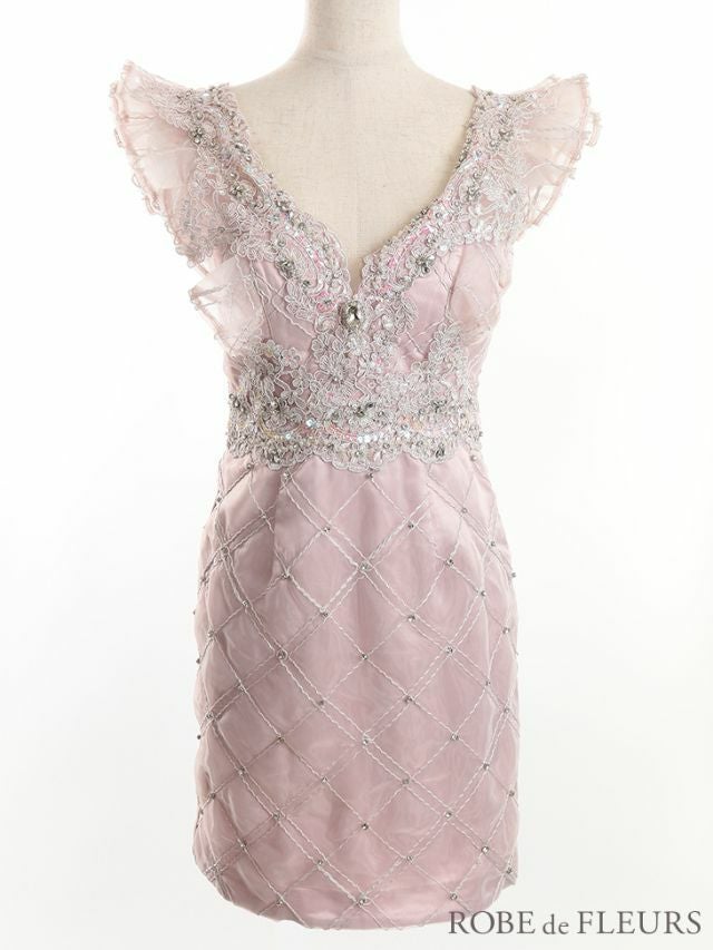 セクシーもガーリーも叶える☆ [ROBEdeFLEURS/ローブドフルール] 高級フリルスリーブブロックチュールフラワーモチーフパールビジューノースリーブミニドレス