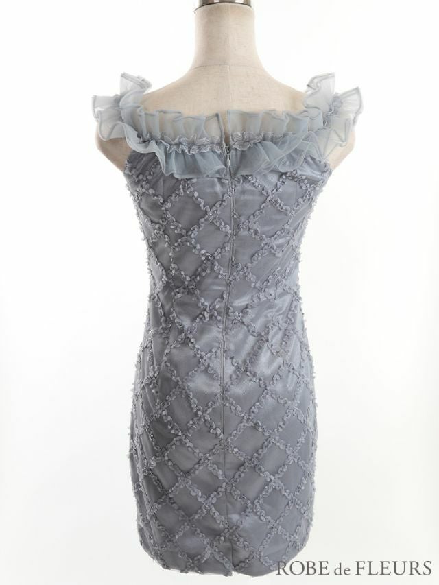 大きなフリルがフェミニン☆ [ROBEdeFLEURS/ローブドフルール] 高級フリルビジュー立体フラワーレースオフショルダーミニドレス