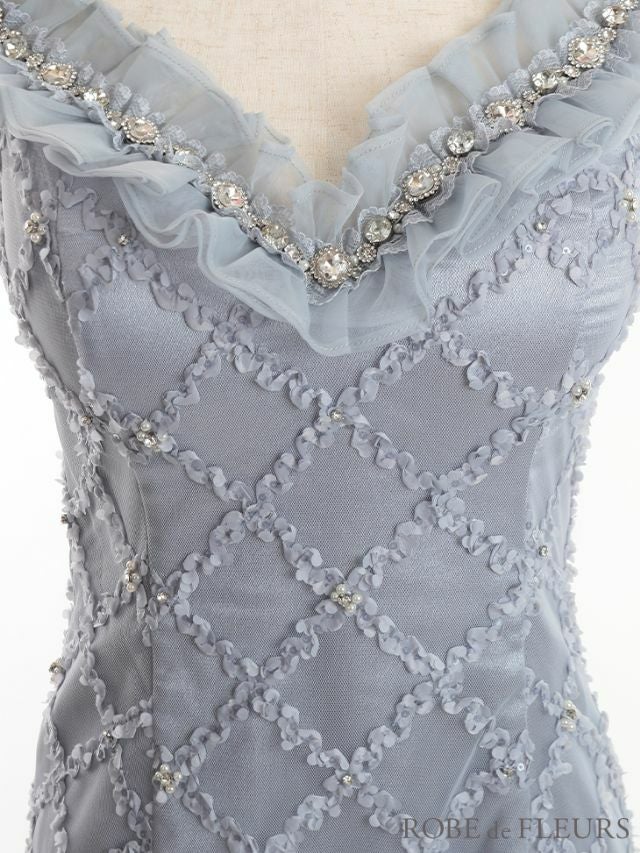 5. [ROBEdeFLEURS/ローブドフルール] 高級フリルビジュー立体フラワーレースオフショルダーミニドレス