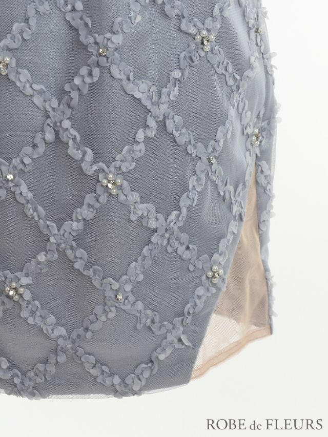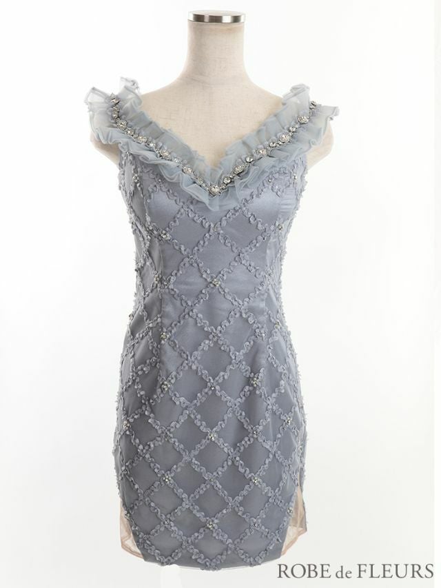 4. [ROBEdeFLEURS/ローブドフルール] 高級フリルビジュー立体フラワーレースオフショルダーミニドレス