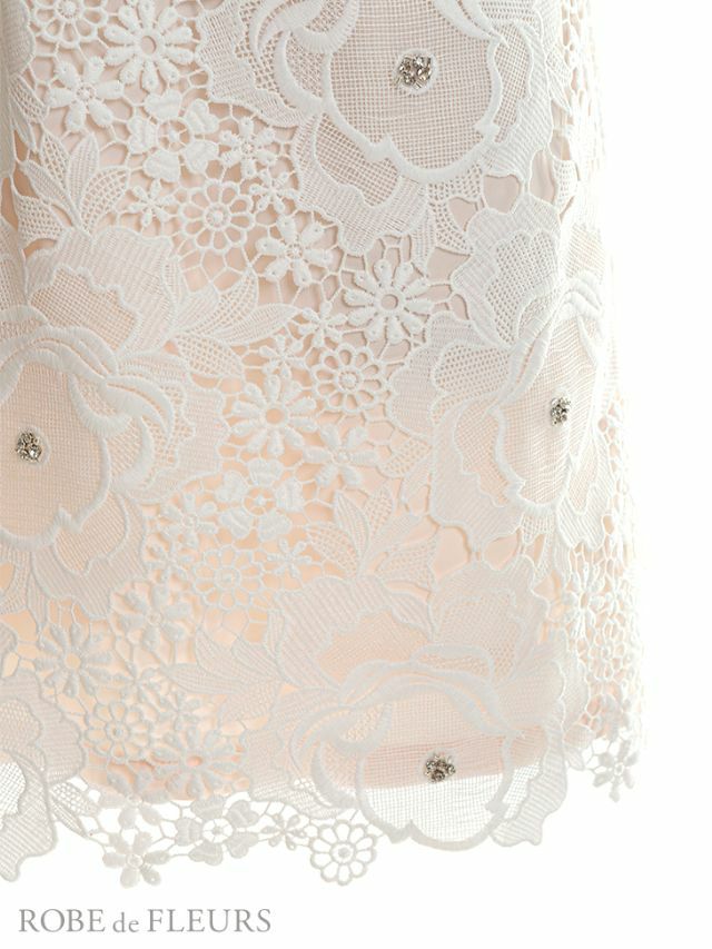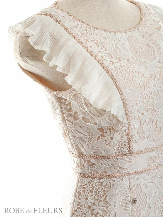 ローズレース×フリルがフェミニンキュート☆ [ROBEdeFLEURS/ローブドフルール] 高級ビジュー付きローズレースショルダーフリルノースリーブタイトミニドレス