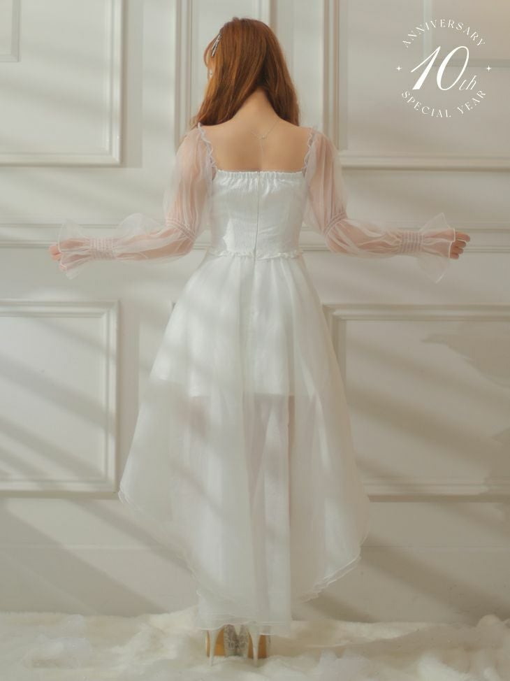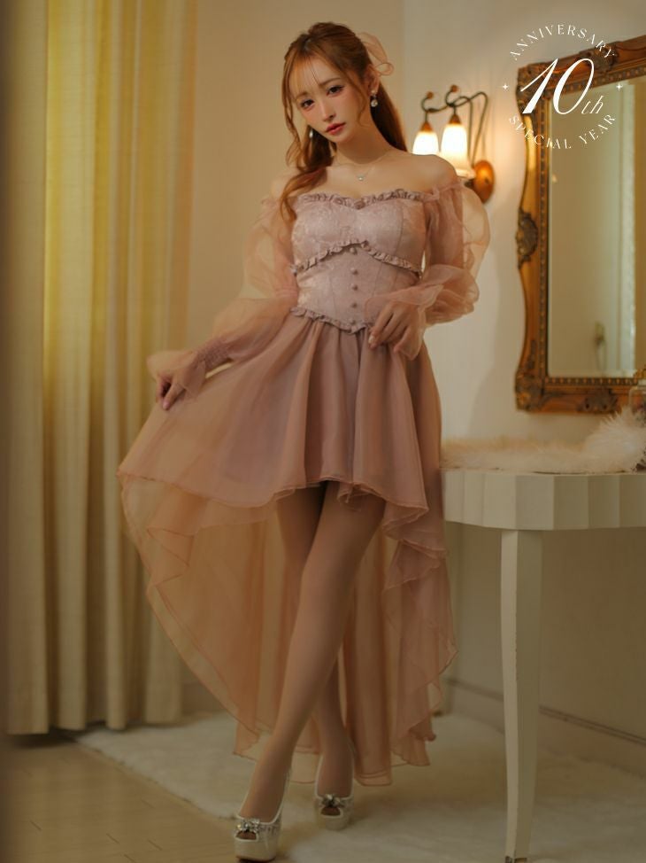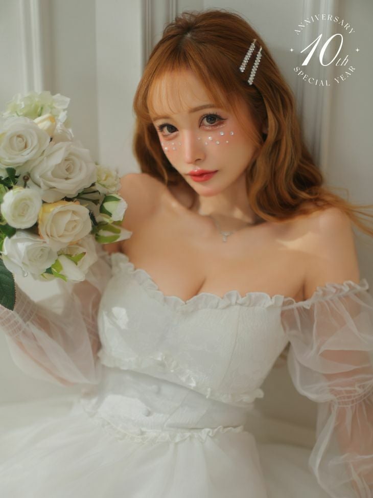 女の子らしさMAXのふわふわデザイン☆ [ROBEdeFLEURS/ローブドフルール] 高級オフショルダーシースルー長袖 袖ありロングテールドレス