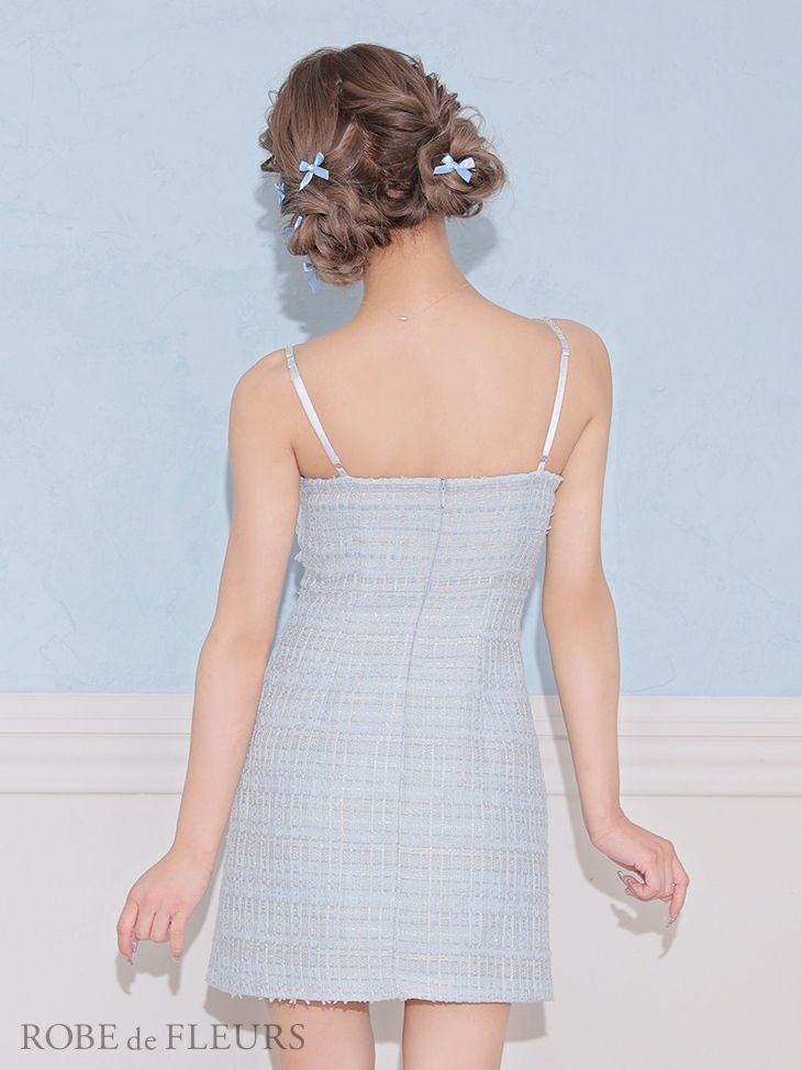 4. [ROBEdeFLEURS/ローブドフルール] 高級ツイードバストチュールリボンラインビジューキャミソールタイトミニドレス