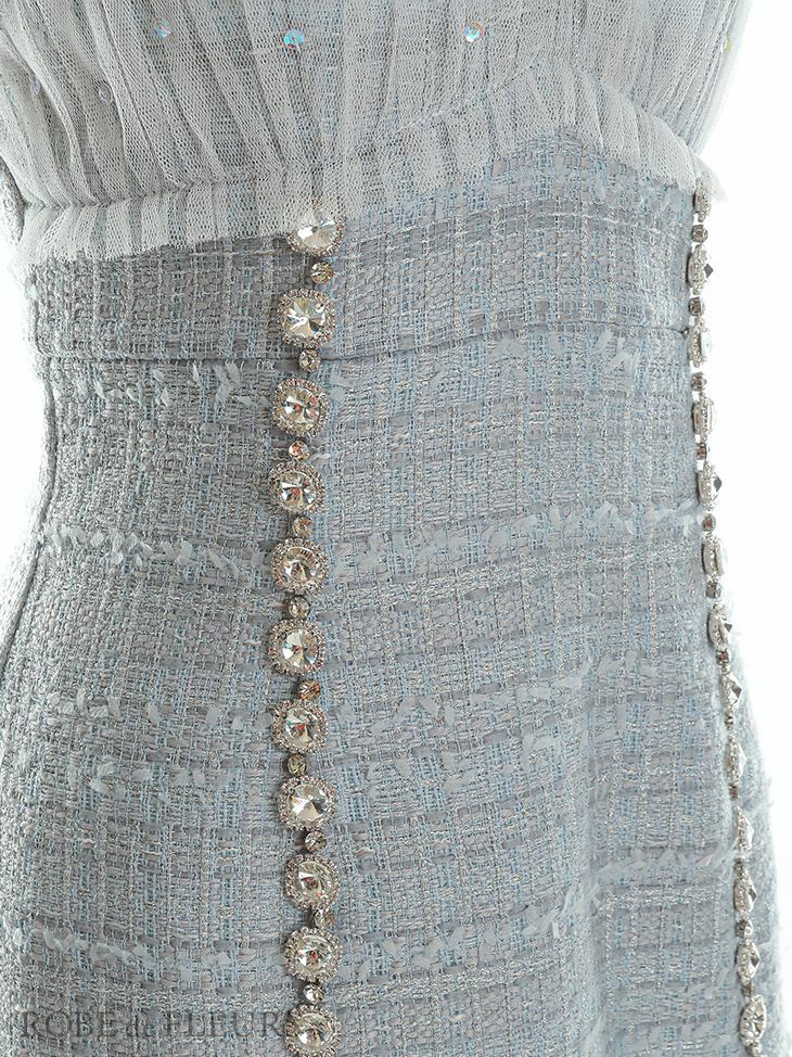 5. [ROBEdeFLEURS/ローブドフルール] 高級ツイードバストチュールリボンラインビジューキャミソールタイトミニドレス
