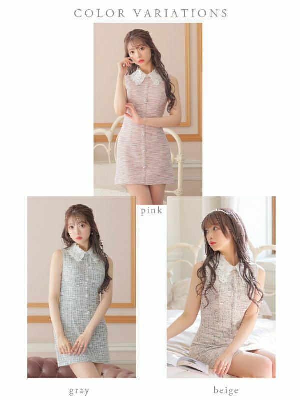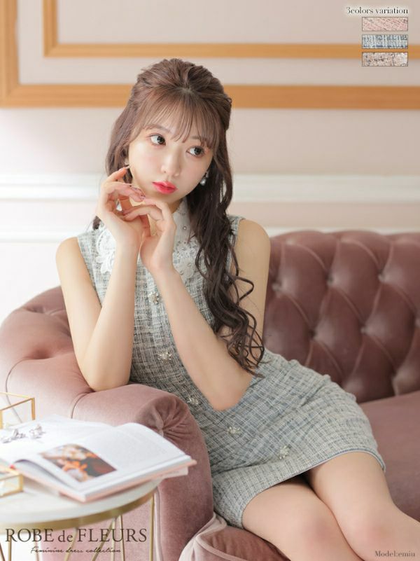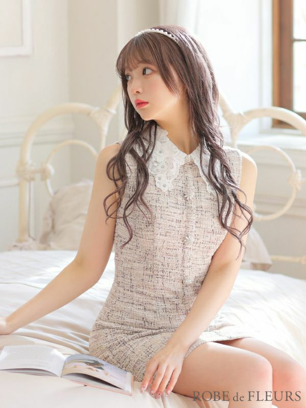 ガーリーさが詰め込まれた一着☆ [ROBEdeFLEURS/ローブドフルール] 高級フラワーカラーノースリーブニットツイードタイトミニドレス