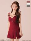ショルダーリボンが可愛さをプラス♡ [ROBEdeFLEURS/ローブドフルール] 高級 ブランド Aラインミニドレス 谷間 セットアップ キャミソール ジップ ショルダーリボン コード プリーツ