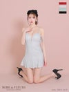 4. [ROBEdeFLEURS/ローブドフルール] 高級キャミソールジップ袖リボンラメニットスパンコールチュールフレアミニドレス