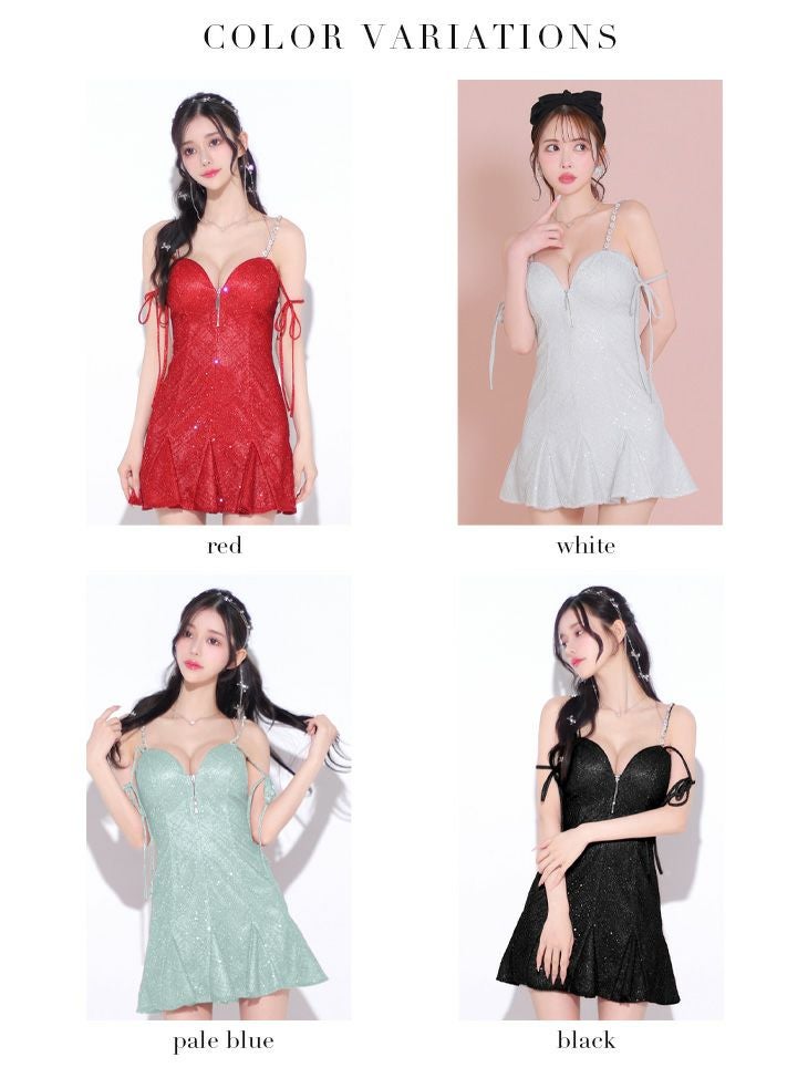 キャバドレス ミニドレス ROBEdeFLEURS ローブドフルール 高級キャミソールジップ袖リボンラメニットスパンコールチュールフレアミニドレス
