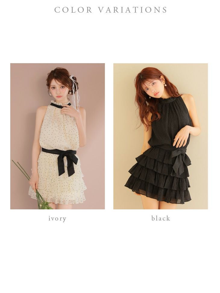 5. [ROBEdeFLEURS/ローブドフルール] 高級 ブランド Aラインミニドレス ノースリーブ ドット柄 ウエストリボン ティアード フリル