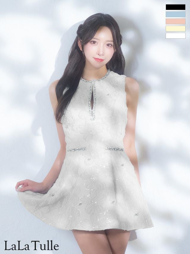 愛されシルエットをメイク♡ [ROBEdeFLEURS/ローブドフルール] 高級 ブランド Aラインミニドレス ノースリーブ フラワーデザインレース ビジューライン (ゆいぴす着用)