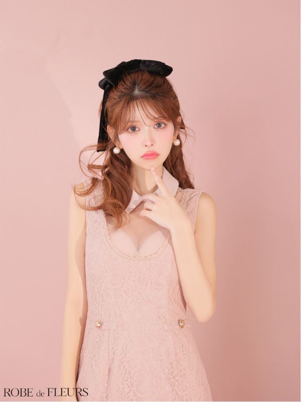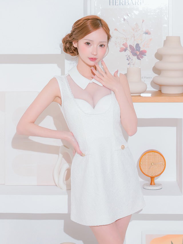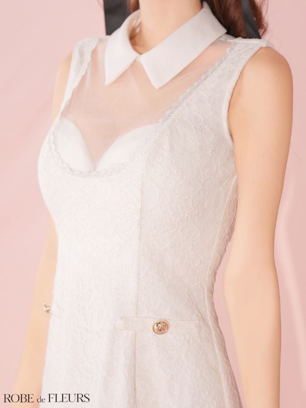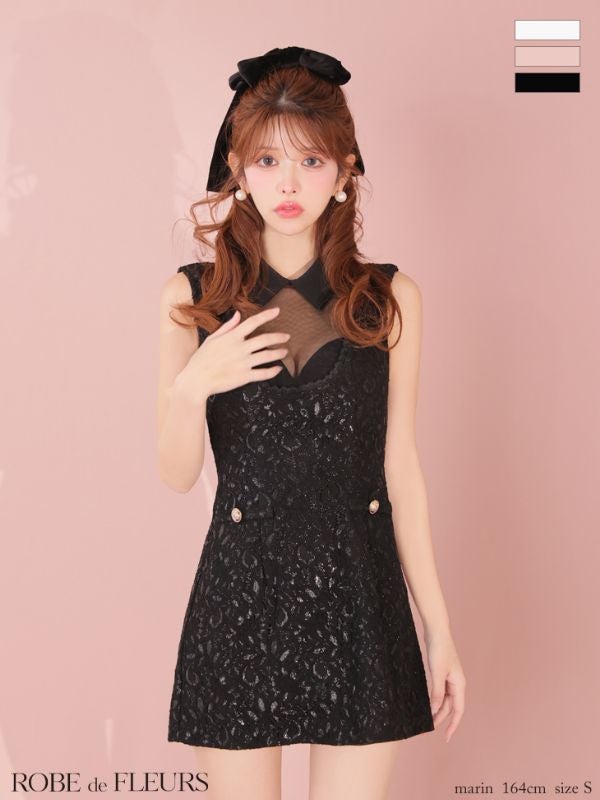 6. [ROBEdeFLEURS/ローブドフルール] 高級 ブランド タイトミニドレス 谷間 ノースリーブ 襟付き バストシースルー レース (れむ着用)