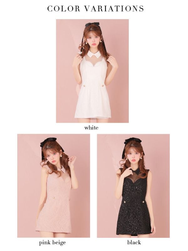透ける肌見せで上品さと色気を演出♡ [ROBEdeFLEURS/ローブドフルール] 高級 ブランド タイトミニドレス 谷間 ノースリーブ 襟付き バストシースルー レース (れむ着用)
