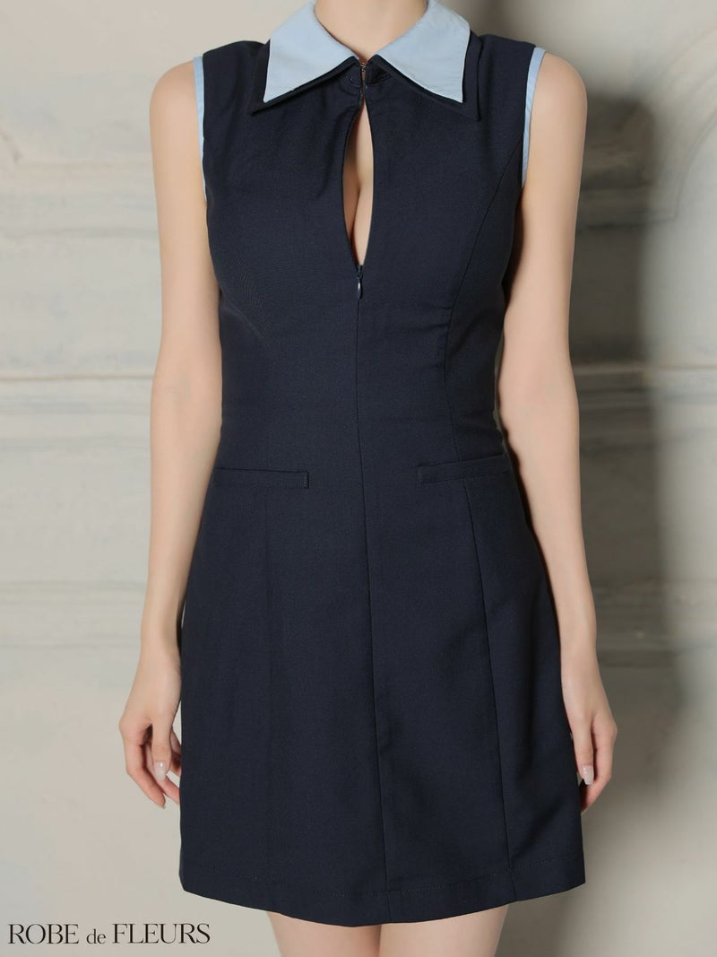 上品な女の子に演出♡ [ROBEdeFLEURS/ローブドフルール] 高級 ブランド ワンピース タイトミニドレス 谷間 ノースリーブ 襟付き バストカット 大人