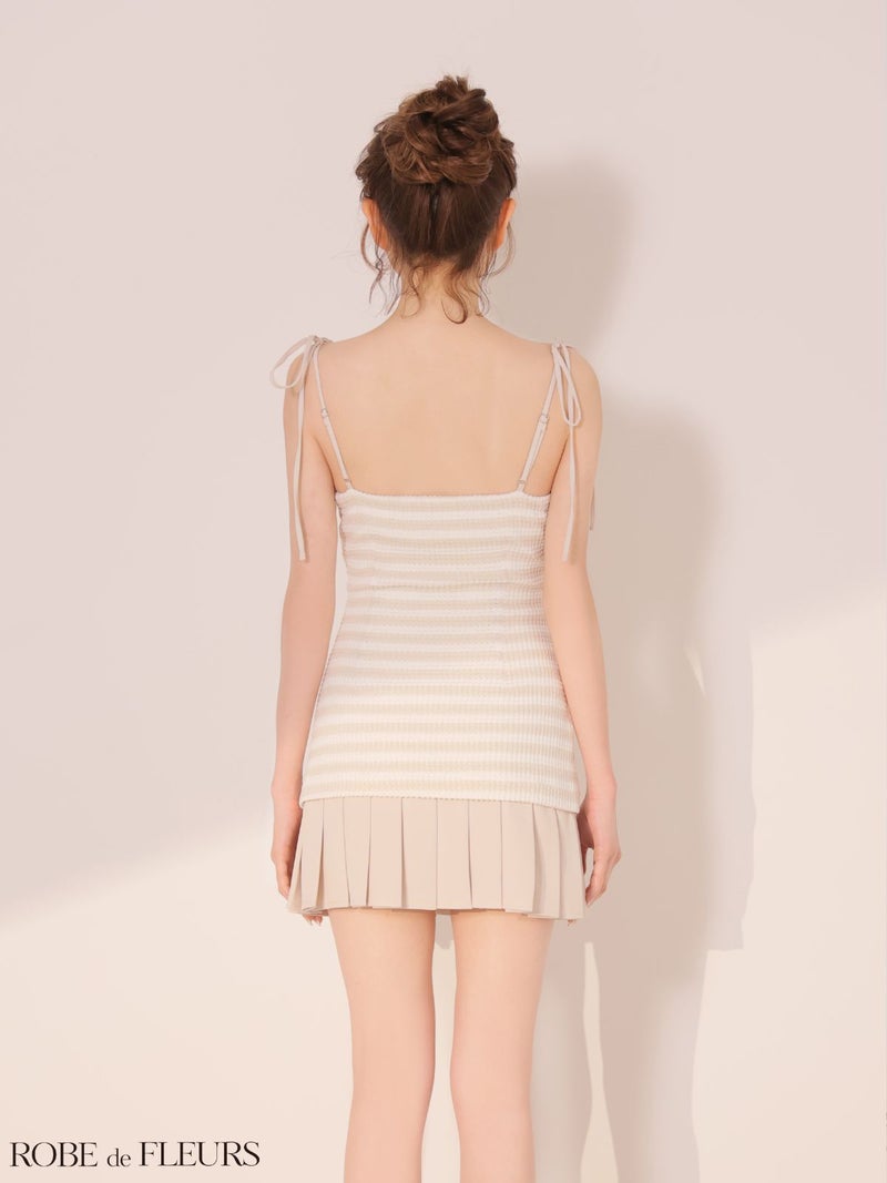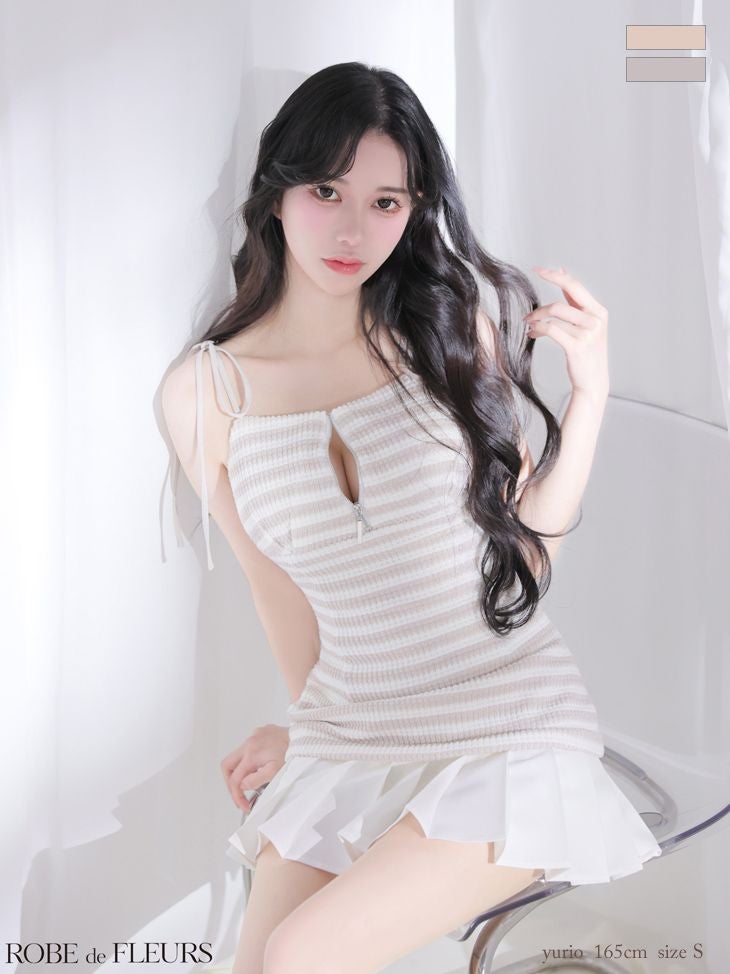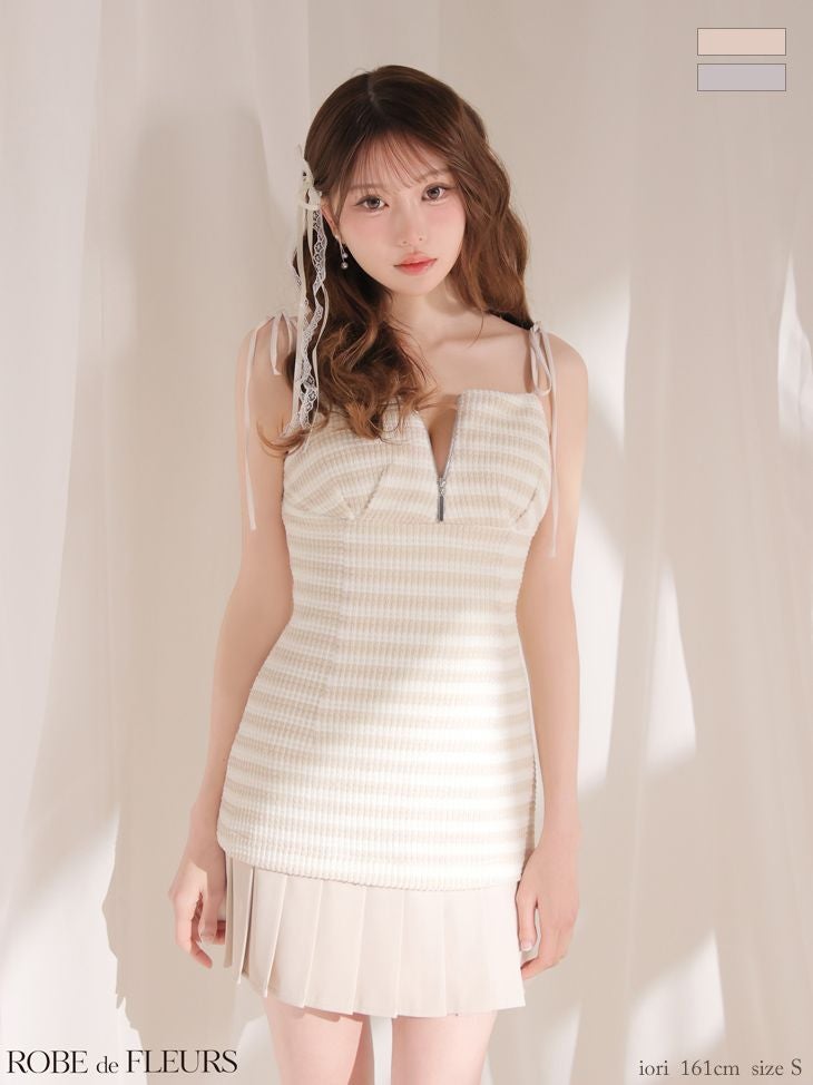 ジップでセクシーさをプラス♡ [ROBEdeFLEURS/ローブドフルール] 高級 ブランド タイトミニドレス 谷間 キャミソール ジップ ボーター ニット ショルダーリボン プリーツ