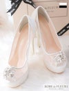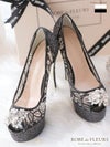 ビジューモチーフは取り外し可能☆ [ROBEdeFLEURS/ローブドフルール] 高級総レース×グリッターオープントゥパンプス (14.5cmヒール)