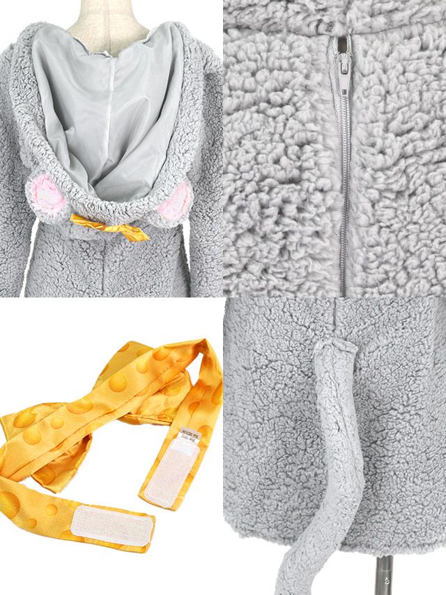 4. [コスプレ] フード付きマウス着ぐるみ風体型カバー袖ありアニマル [5点セット] (ワンピース/蝶ネクタイ/グローブ/レッグウォーマー/しっぽ)