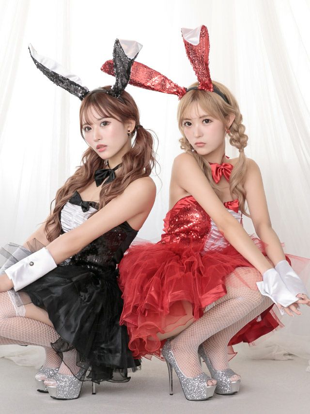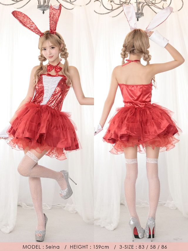 3. SALE [コスプレ] キラキラボリュームチュールフレアスカートミニ丈メイドバニー [4点セット] (ワンピース/リボン/カチューシャ/カフス)