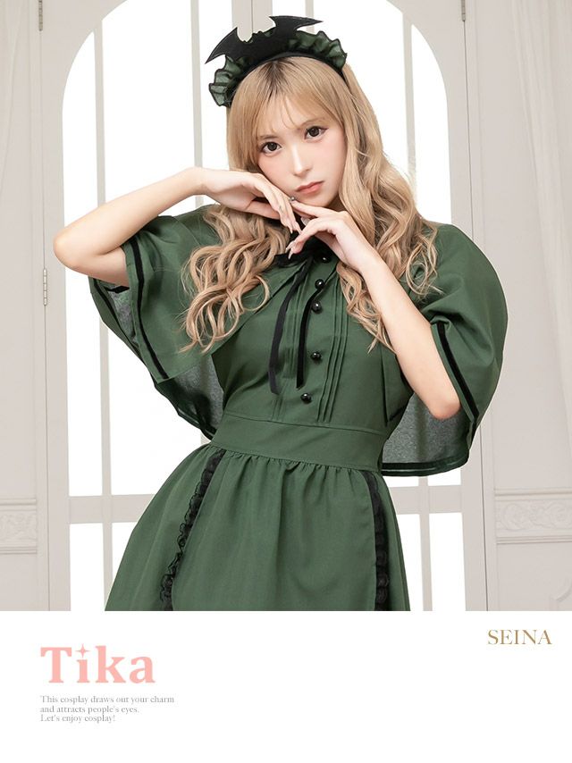 ケープ付き2Way洋館メイド ハロウィンコスプレ3点セットの物撮り全身
