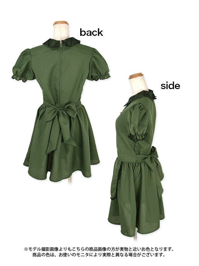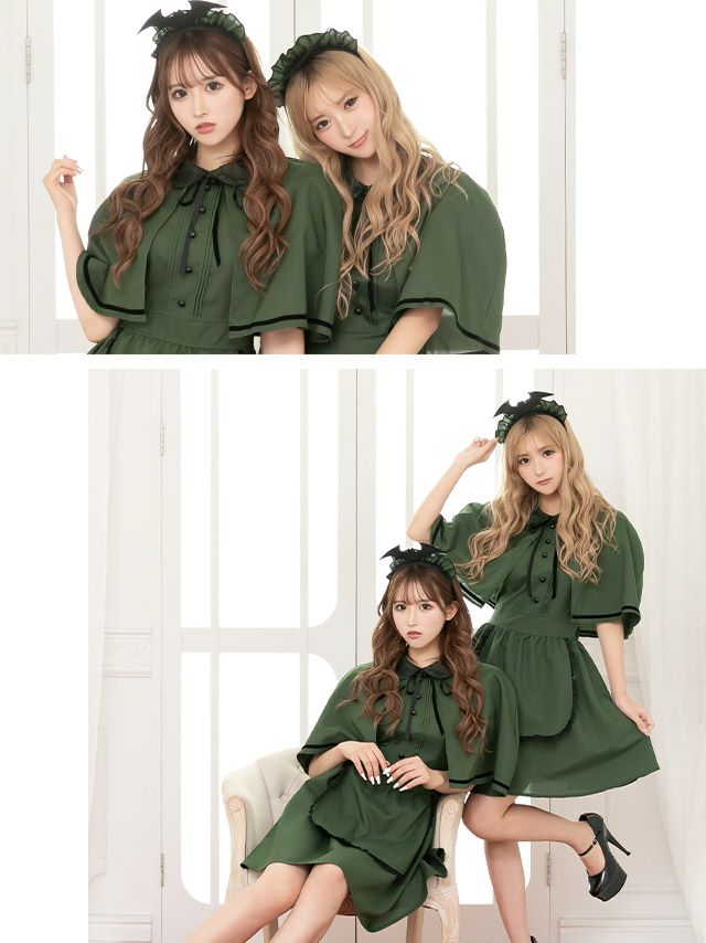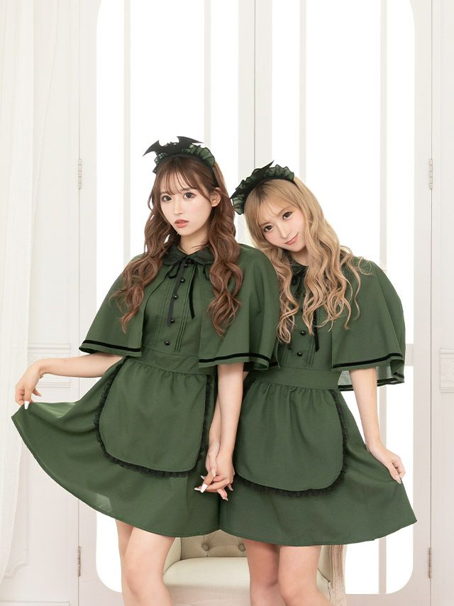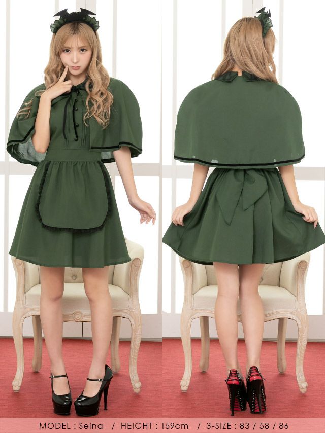 ケープ付き2Way洋館メイド ハロウィンコスプレ3点セットのフロントバック全身