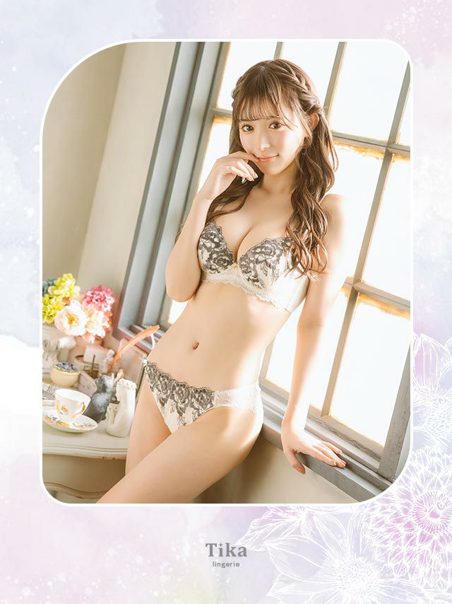 4. [勝負下着] ビジューチャーム付きゴージャスボタニカル刺繍カップブラジャー&ショーツ2点セット