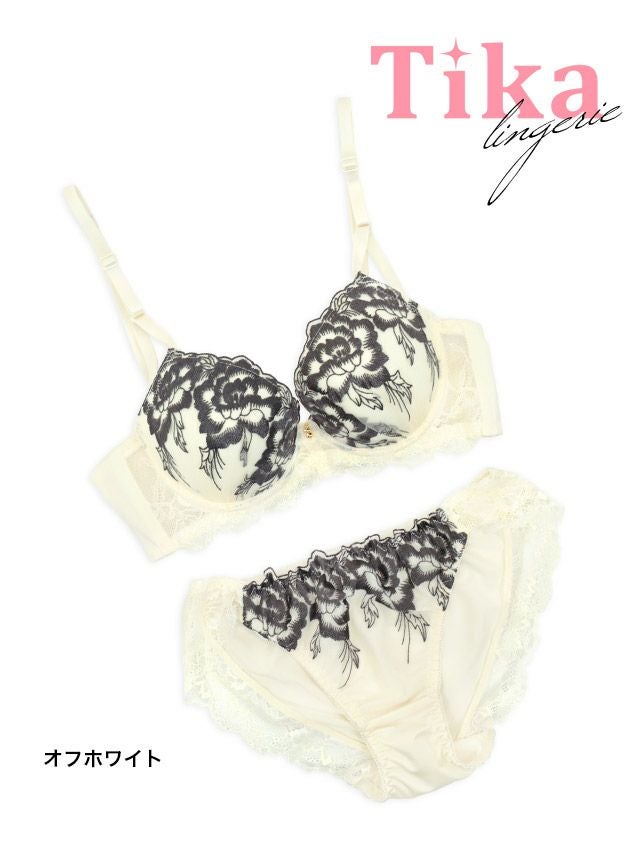 [勝負下着] ビジューチャーム付きゴージャスボタニカル刺繍カップブラジャー&ショーツ2点セット