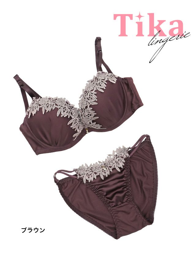 肌に馴染む大人カラーランジェリー♪ [勝負下着] クラシカルケミカルレース刺繍デザインサテンカップブラジャー&ショーツ2点セット