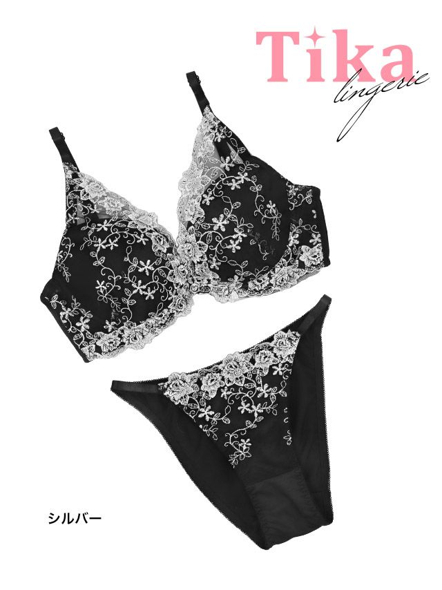 アイビーローズ刺繍脇高カップブラジャー&ショーツ2点セットのイメージ画像1