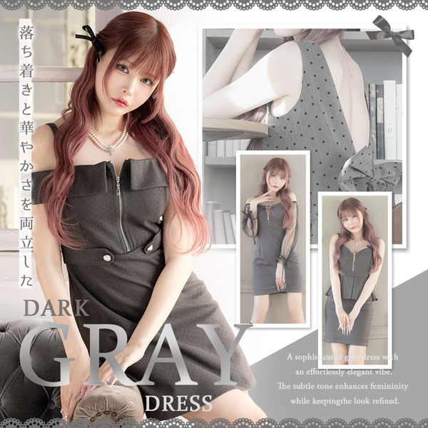 落ち着きと華やかさを両立した大人かわいい Dark Gray Dress