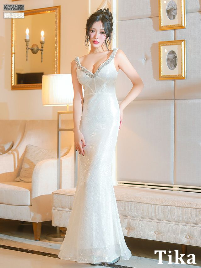 4. 谷間魅せロングドレス