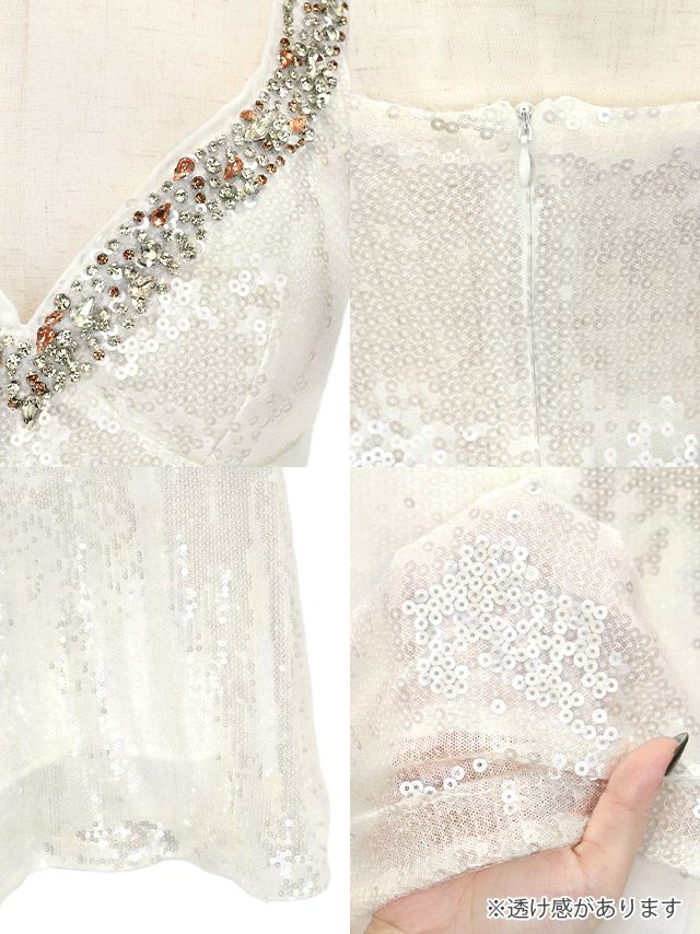 ネックラインまで高級感漂うビジューの装飾で