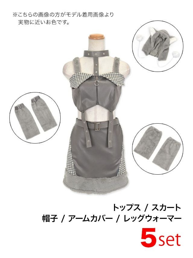 甘辛なもこもこウルフ♪ [SALE] コスプレ へそ出しセクシーセパレートもこもこチェックウルフガールアニマル [5点セット] (帽子/トップス/スカート/アームカバー/レッグウォーマー)