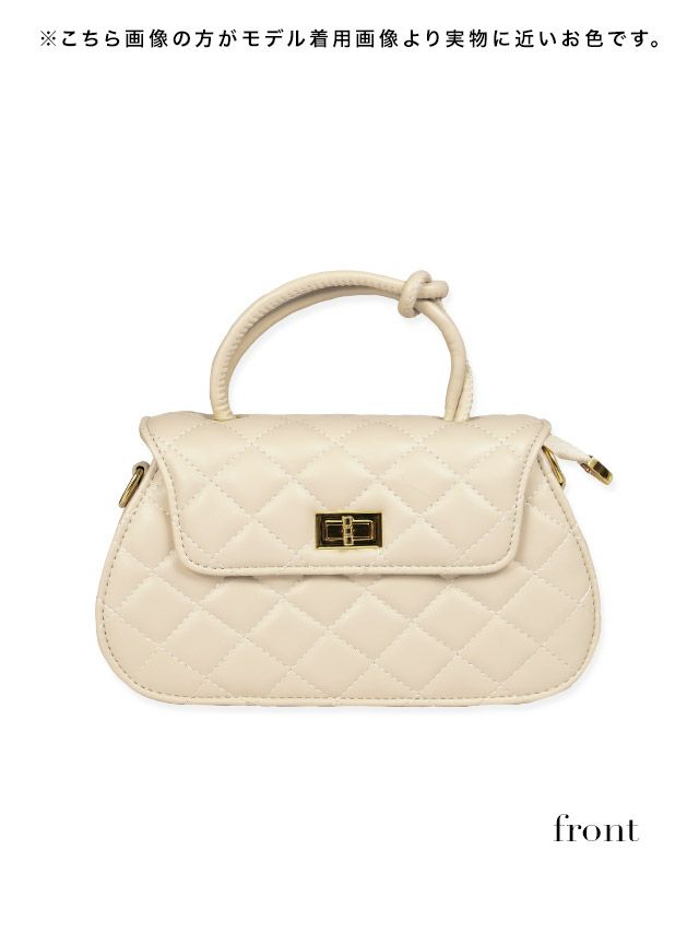 結びハンドル2Wayキルティングバッグオフホワイトのイメージ画像1