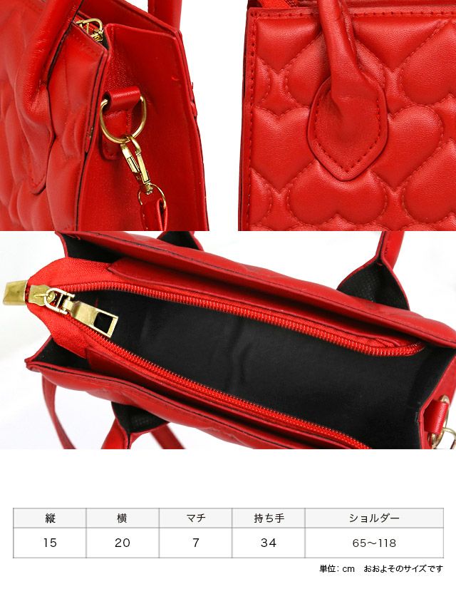 ハート型キルティング2Wayミニハンドバッグのディティール サイズ表