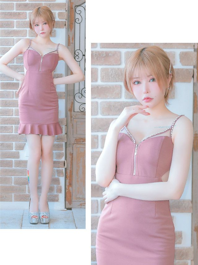 3. キャミソール ジップ バストコード くびれ 裾フリル 谷間魅せ セクシー タイトミニドレス (Sサイズ~Lサイズ) (戦慄かなの/キャバドレス着用)