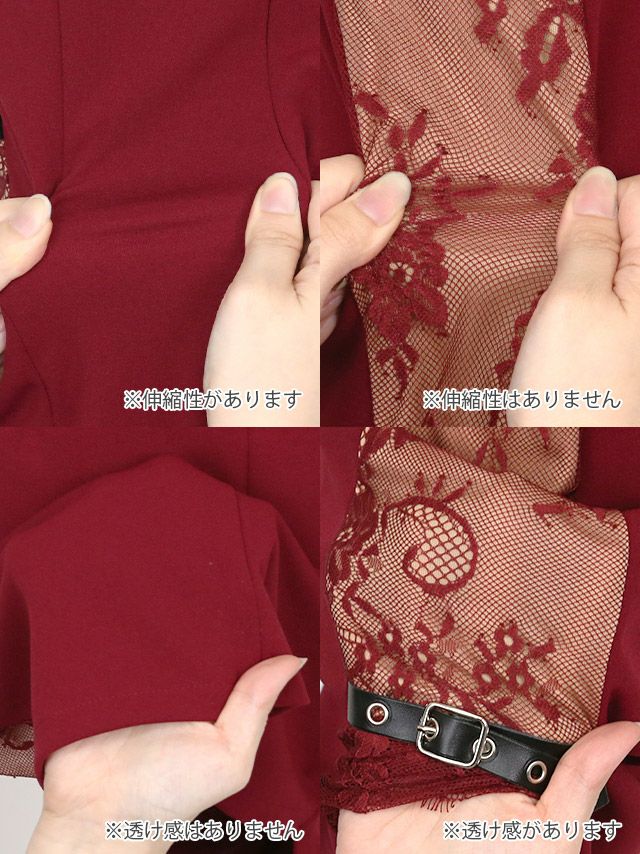 ベアハートカットレースアップサイドレースベルトデザインタイトミニドレスの商品詳細画像2