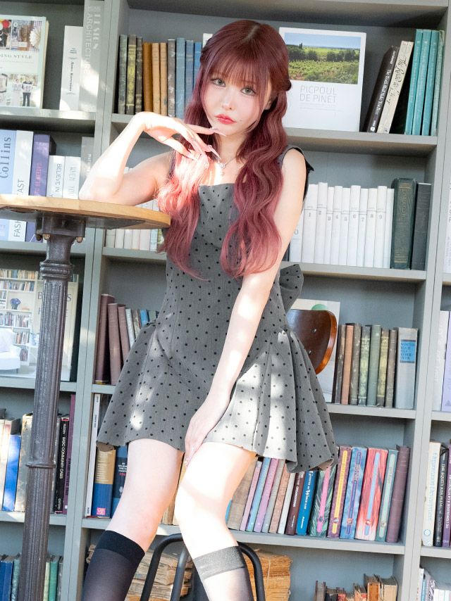 3. ワンピース Aライン ミニドレス ノースリーブ 上品 背中魅せ ドット柄 ピンドット バックリボン 同伴 キャバドレス (戦慄かなの着用)