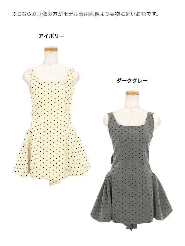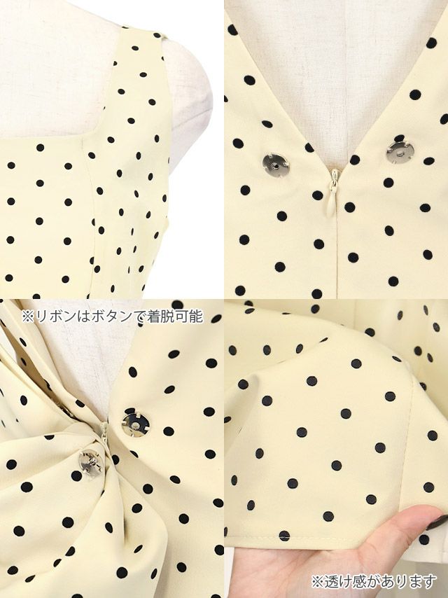 ワンピース Aライン ミニドレス ノースリーブ 上品 背中魅せ ドット柄 ピンドット バックリボン 同伴 キャバドレスのスペック表