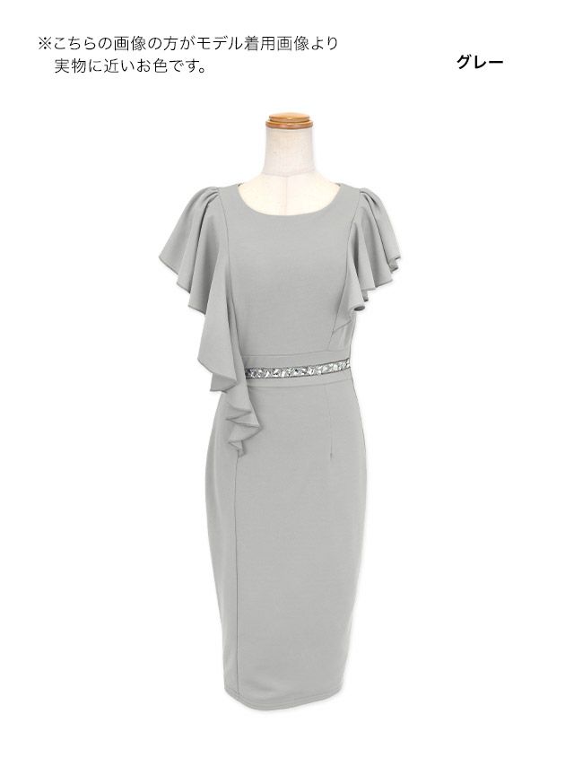 他の画像を見る パーティードレスとしても着回せる万能な1着♪ ワンピース タイト 膝丈ドレス 大きいサイズ シンプル 大人 上品 半袖 ブラジャーのまま 胸元カバー フリル袖 ウエストビジュー 同伴 (戦慄かなの着用) ¥ 6,490 税込 お気に入りに追加
