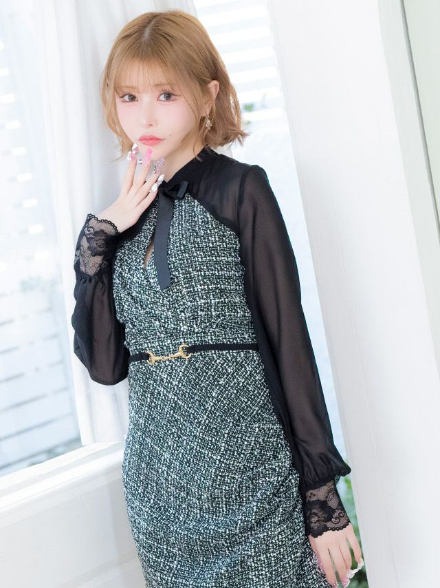 他の画像を見る 究極のドーリーシルエット♪ [SALE] [韓国ドレス] セットアップ ワンピース ブローチ付き 長袖 ケミカルレース 襟付き フリル ブラウス スカートパンツ 胸元カバー Aライン キャバドレス (戦慄かなの着用) [tk-mdsks002b] ¥ 16,500 税込 お気に入りに追加