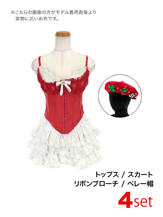 他の画像を見る フレンチガーリーなサンタコス♡ サンタコスプレ 4点set レース 谷間 セクシー リボン コルセット ティアードフリル スカパン フレアスカート 王道 [トップス+スカート+リボンブローチ+ベレー帽] ¥ 14,300 税込 お気に入りに追加